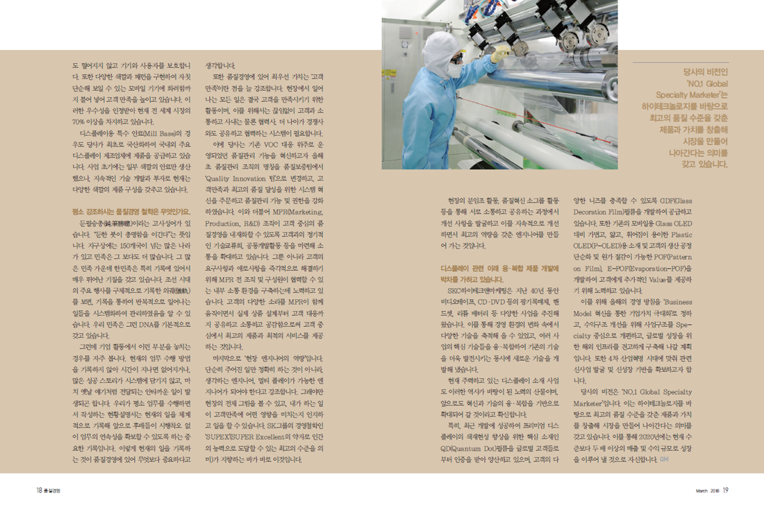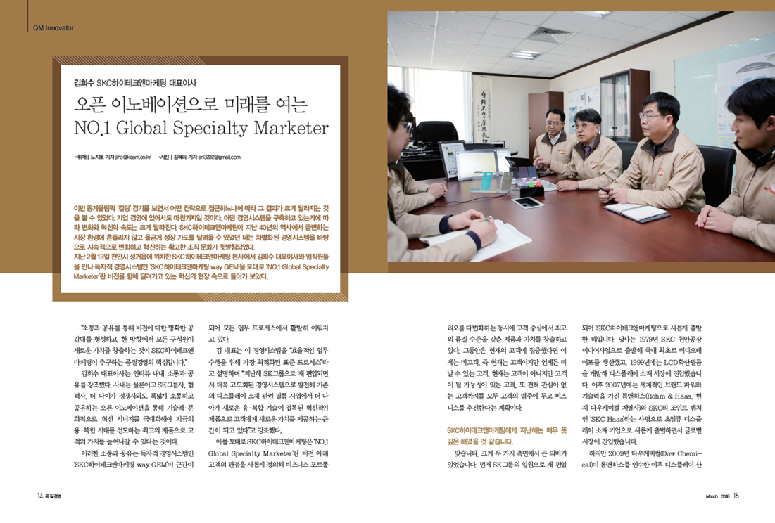 오픈 이노베이션으로 미래를 여는 NO.1 Global Specialty Marketer (월간품질경영지 2018년 3월호)