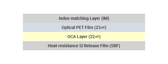 - - Excellent anti-blocking on the non-deposition surface and OCA adhesion (surface tension between 38 and 40dine)